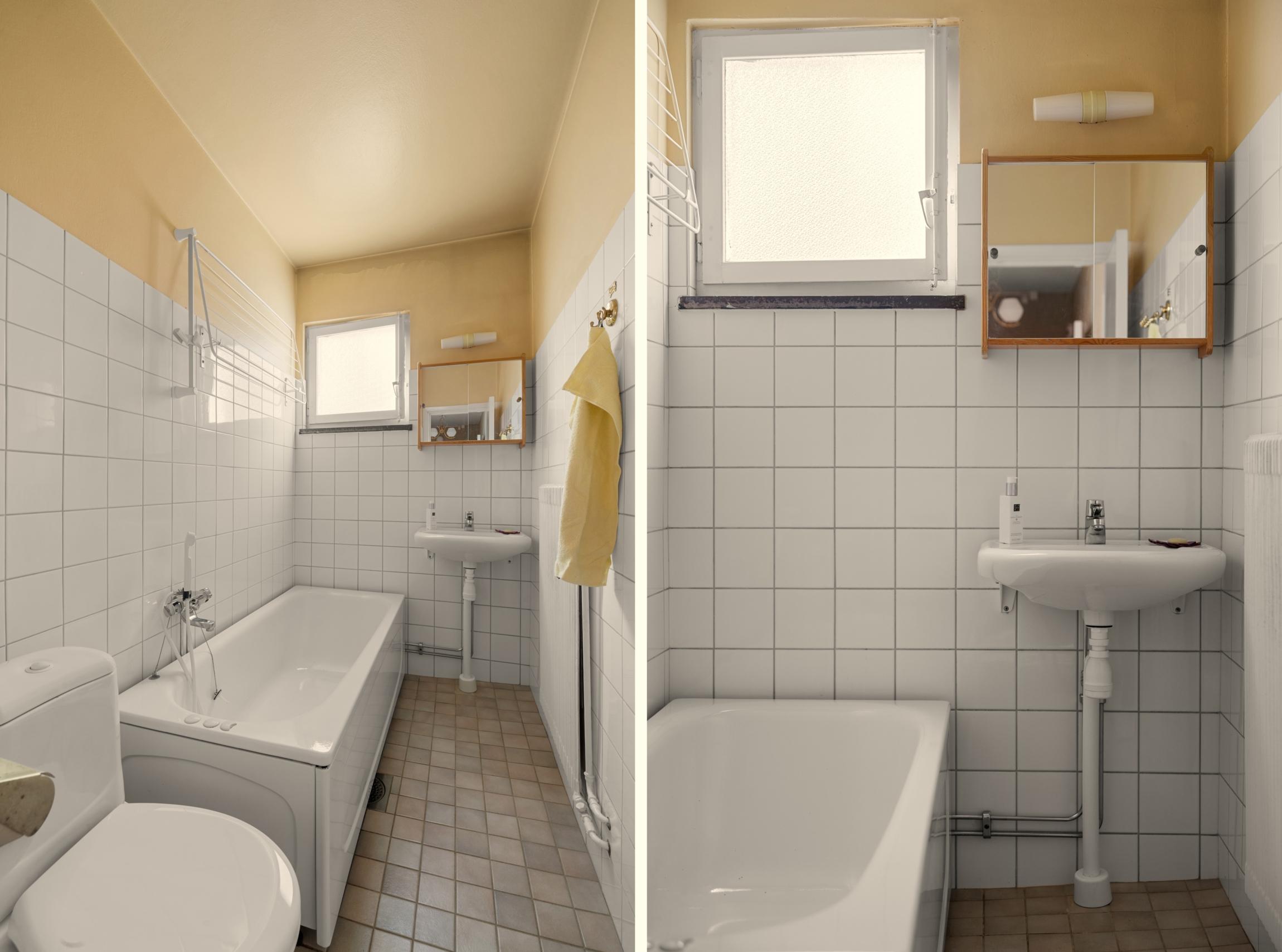 - Kaklat badrum med klinkerogolv