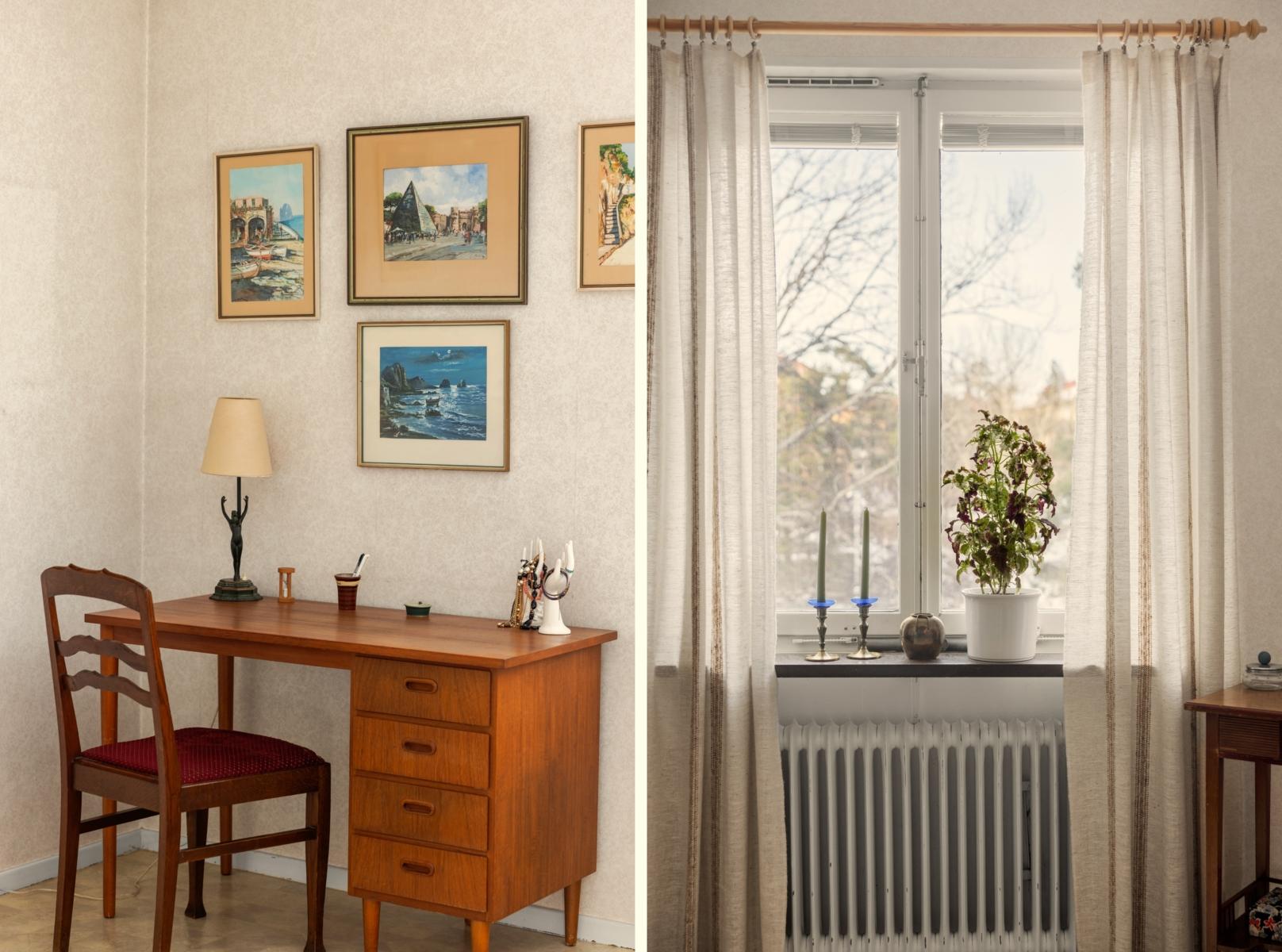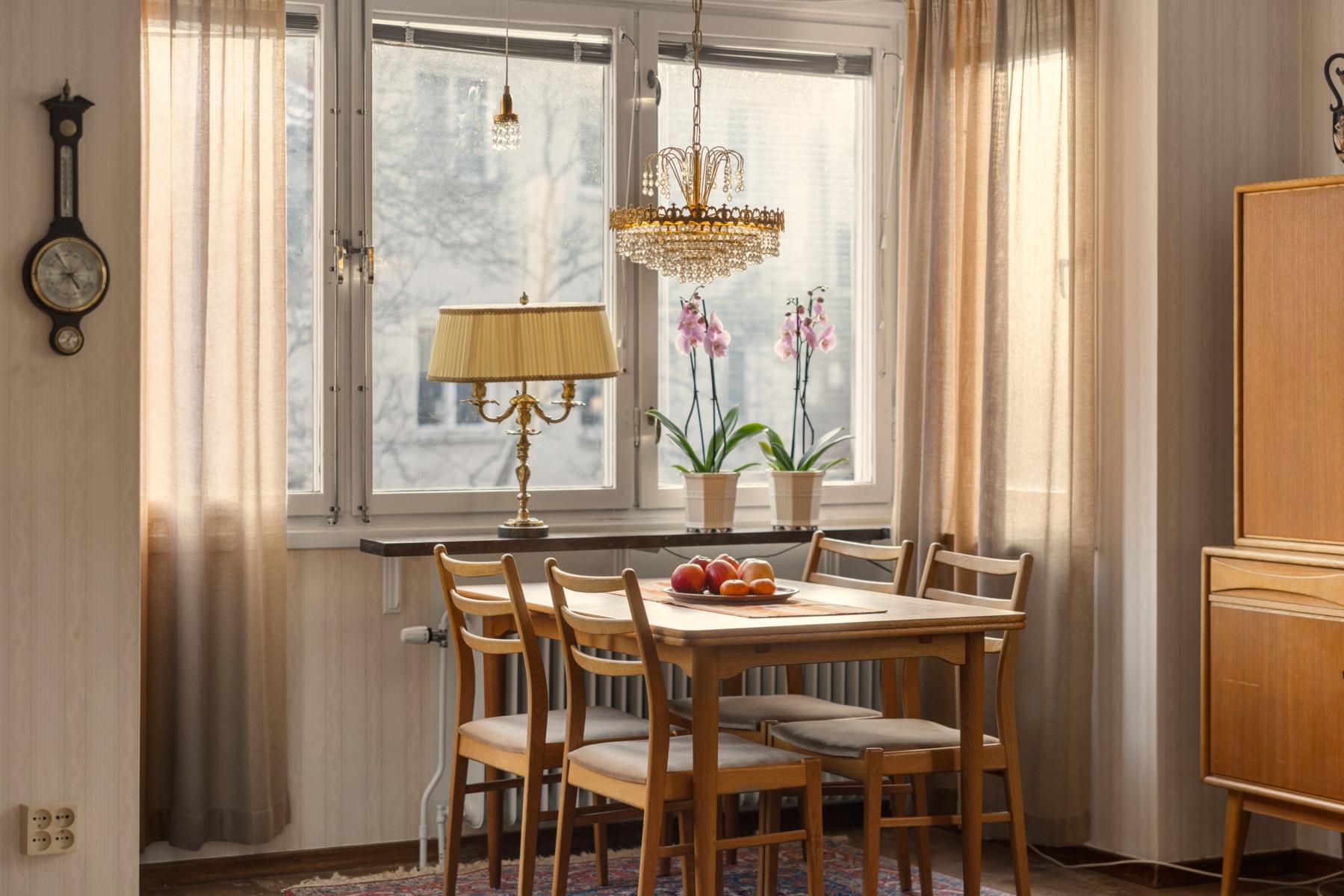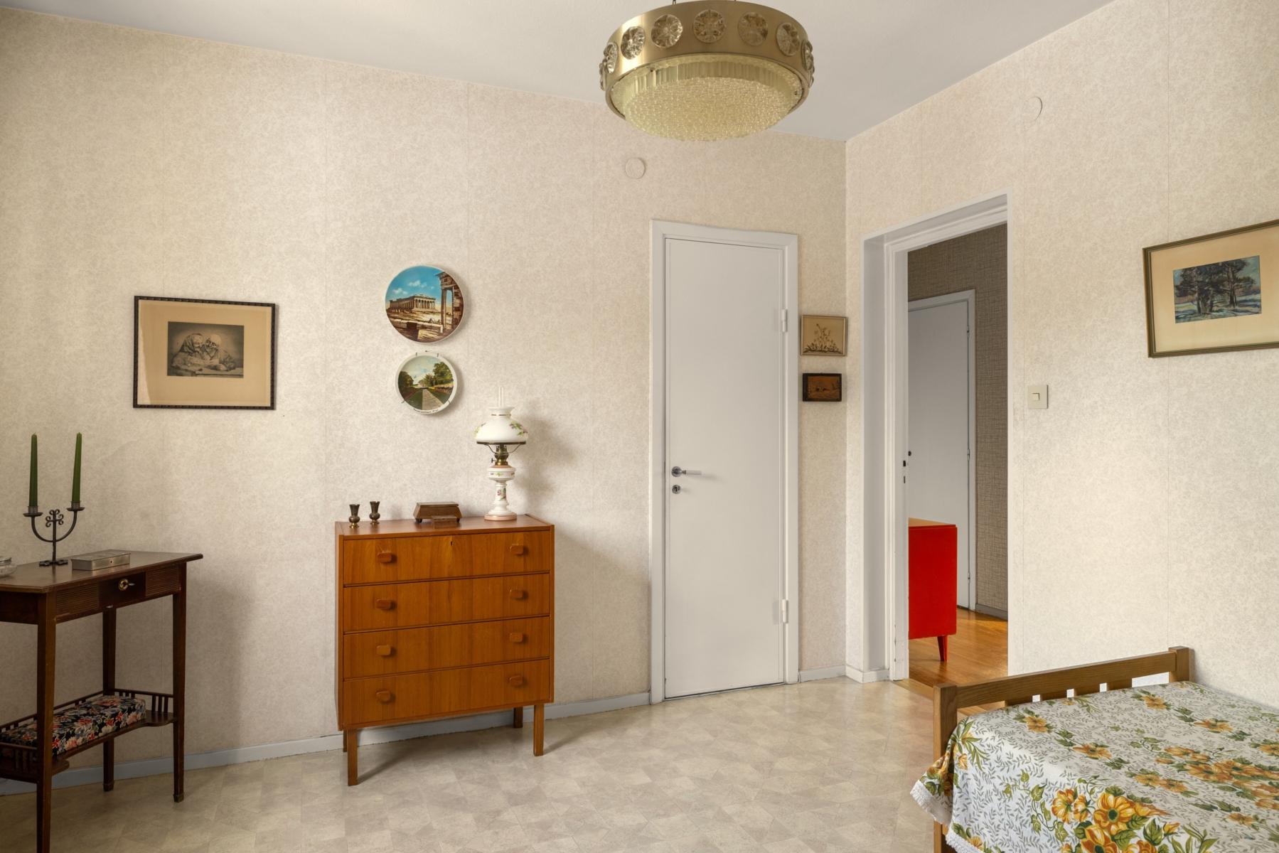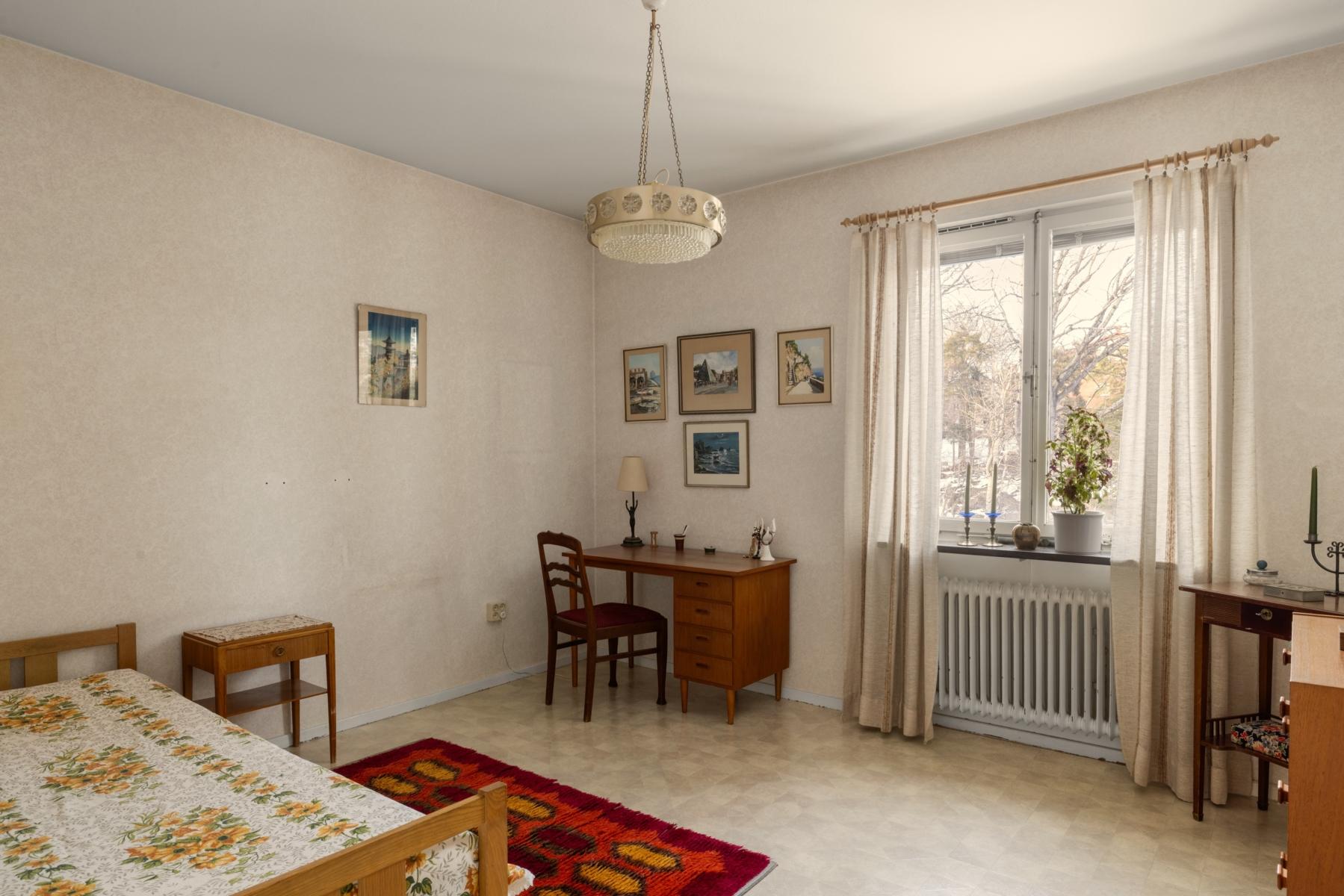 Välkommen tillbaka till 50-talet! Här finns chansen att förvärva en lägenhet som för en tillbaka till en tid då funktionen var i fokus och materialval var gedigna. En charmig 3:a om 70 kvm, belägen högst upp i huset med gavelläge som ger härligt ljusinsläpp från samtliga fyra väderstreck. Lägenheten har ett trivsamt burspråk i vardagsrummet som skapar rymd och ljus. Köket är bevarat i originalutförande med snedställda överskåp med skjutdörrar, och lägenheten har i övrigt många av sina ursprungliga detaljer kvar, vilket ger möjlighet att sätta sin egen prägel genom renovering/restaurering. Badrummet är kaklat med klinkergolv. Från vardagsrummet når du den soliga balkongen i bästa söderläge, perfekt för avkoppling, soliga frukostar eller kvällsmiddagar. Detta är ett hem med stort ljusflöde, gavelläge och karaktär, som väntar på nya ägare som vill uppdatera ytskikt och skapa sitt drömhem i ett attraktivt läge.