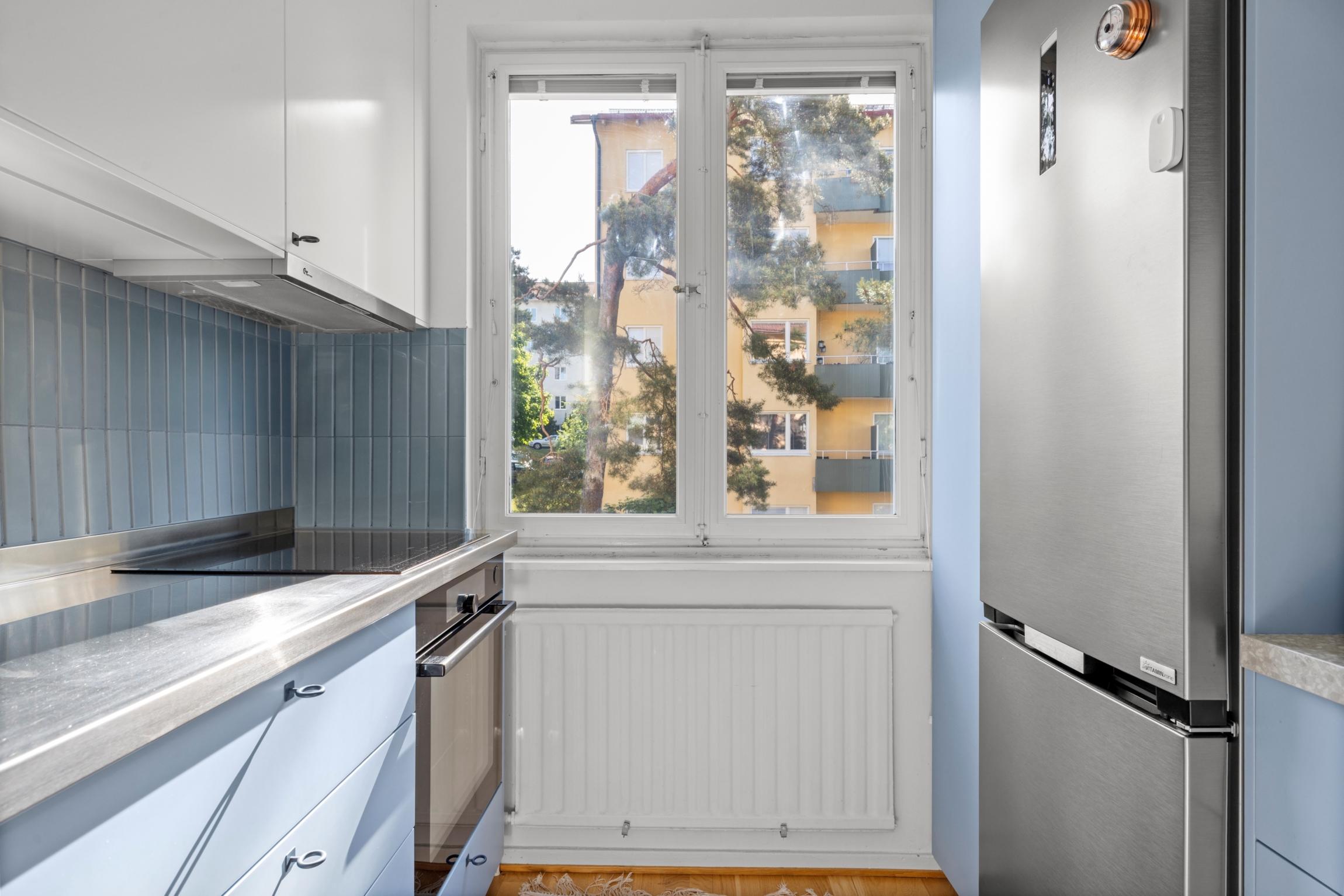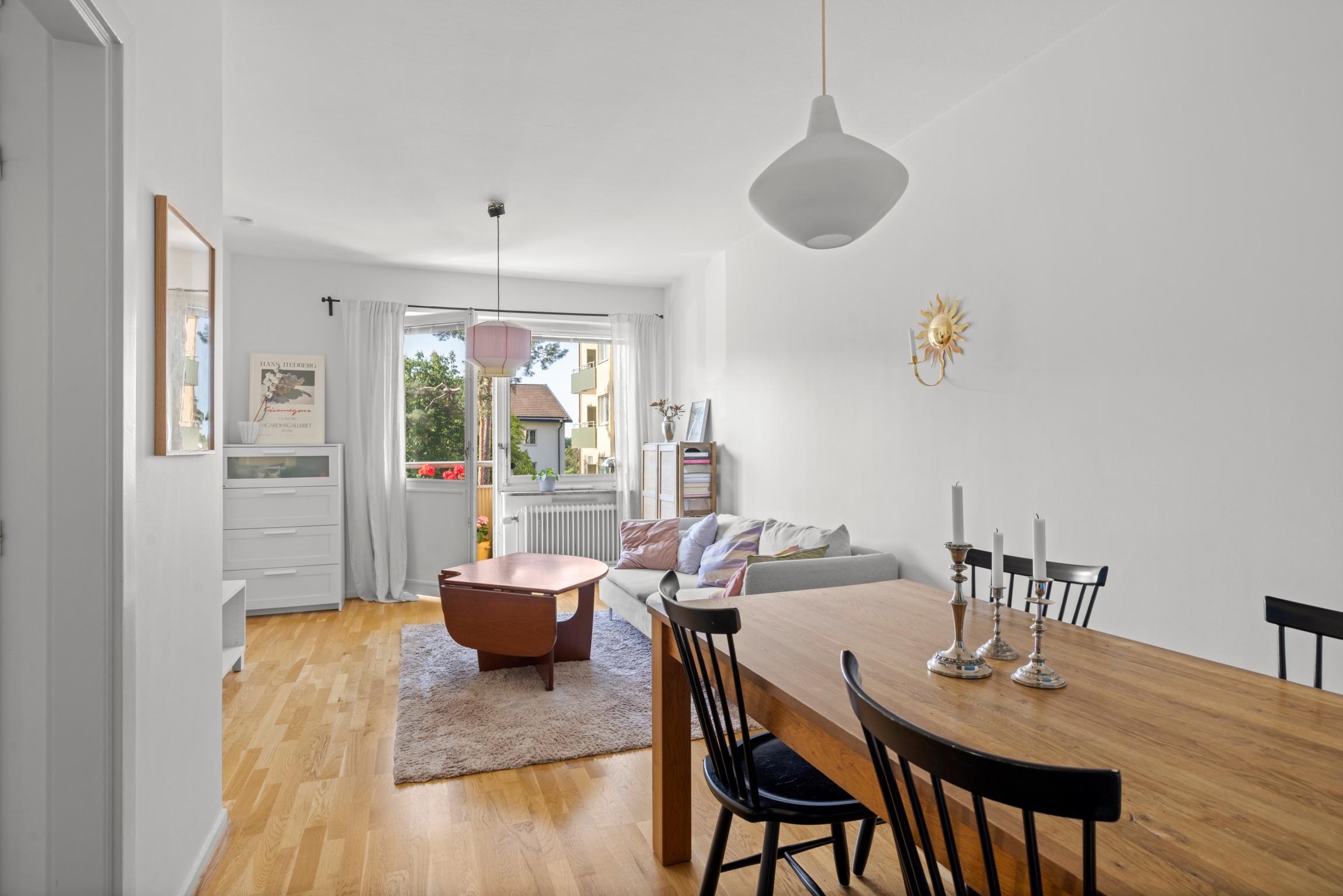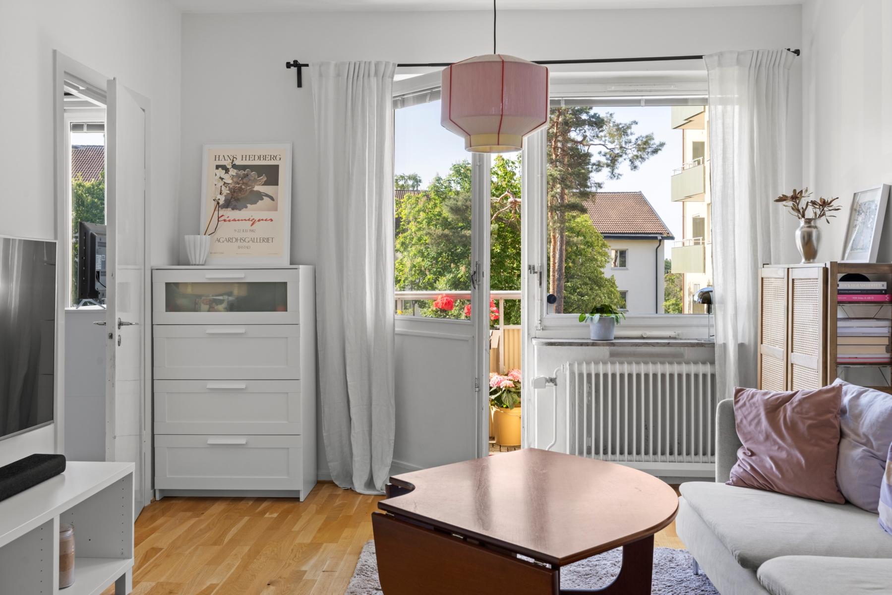 Välkommen till en ytterst välplanerad mini 3:a i lugnt och sjönära läge med balkong i bästa söderläge med sol från förmiddag till sen eftermiddag. Lägenheten har ett rymligt vardagsrum med plats för sittgrupp och matplats. Två väldisponerade sovrum. Ett nytt rymligt arbetskök med mycket gott om förvaring från 2024 och ett kaklat badrum. Hushållselen och fiber bredband (1 000/1 000 Mbit/s)+TV+IP-telefoni ingår i månadsavgiften vilket är en kostnadsbesparing om ca 1 000 kr/mån. Föreningen ligger i framkant med solceller på taket och bergvärme samt övriga energieffektiviseringar. Hiss i fastigheten!
