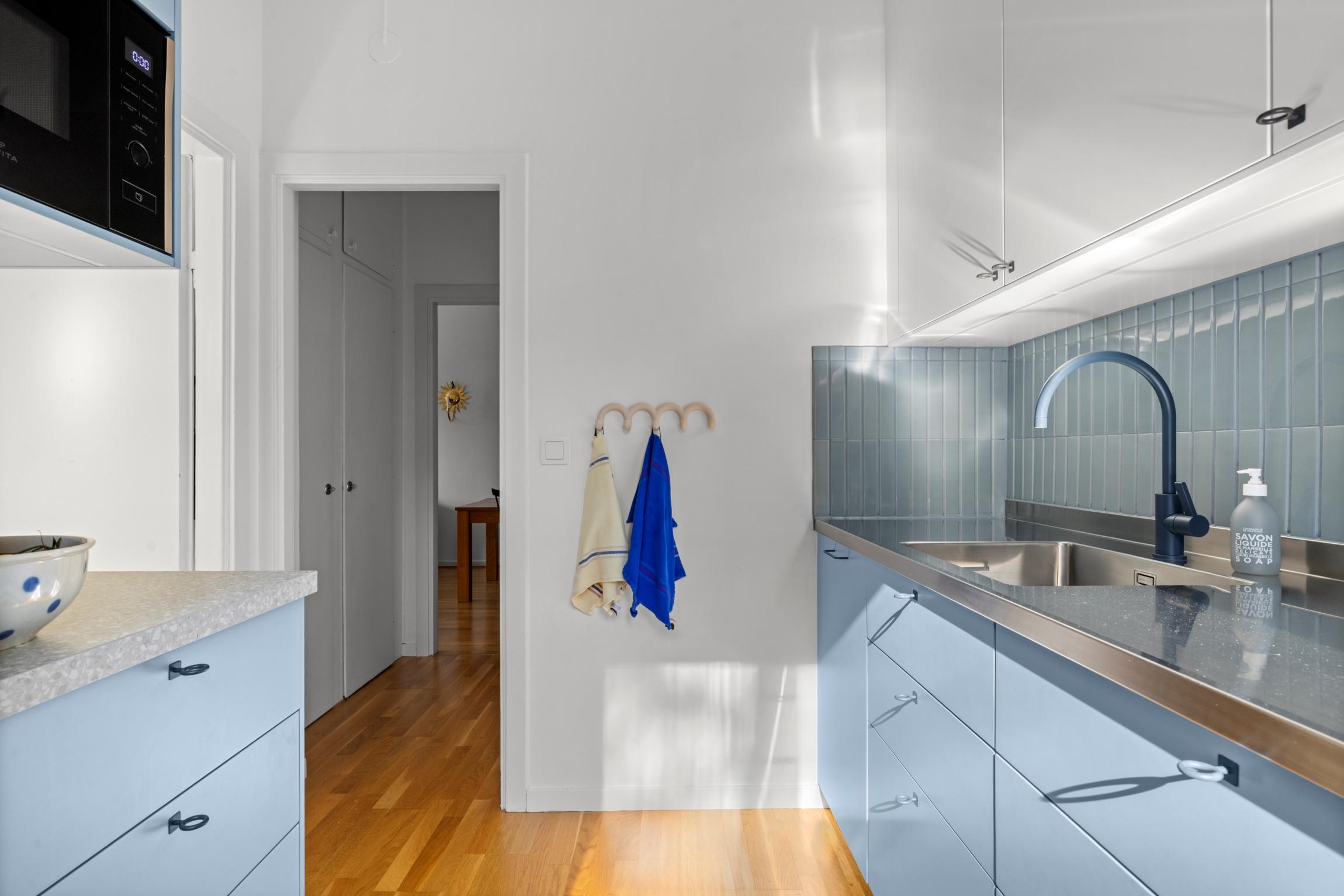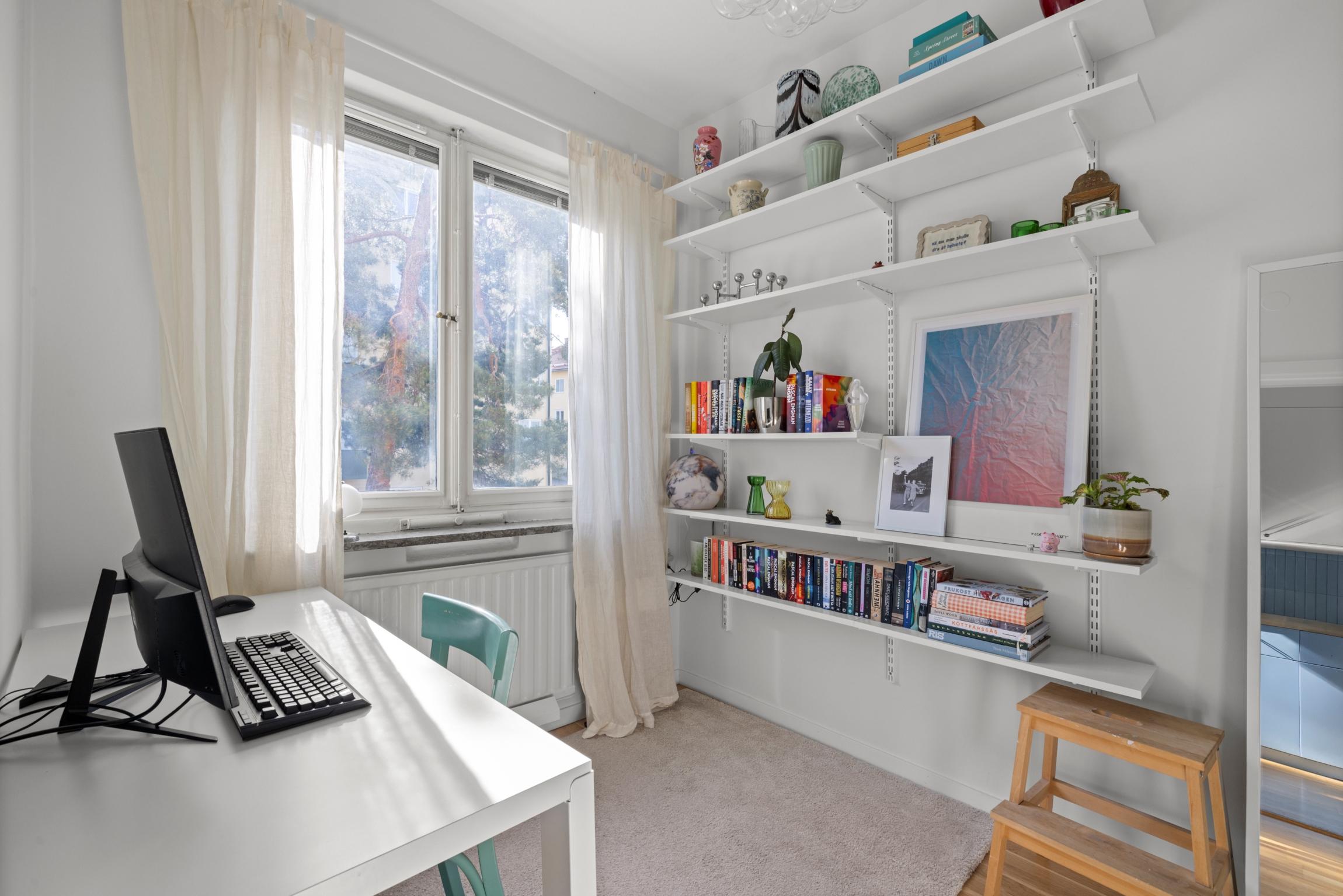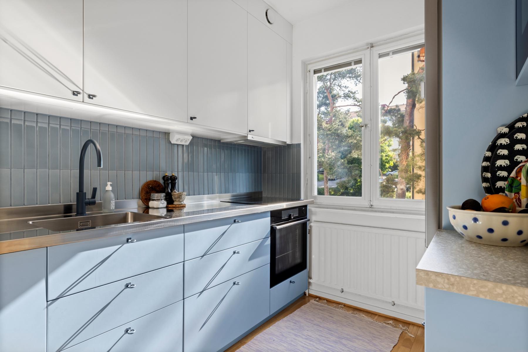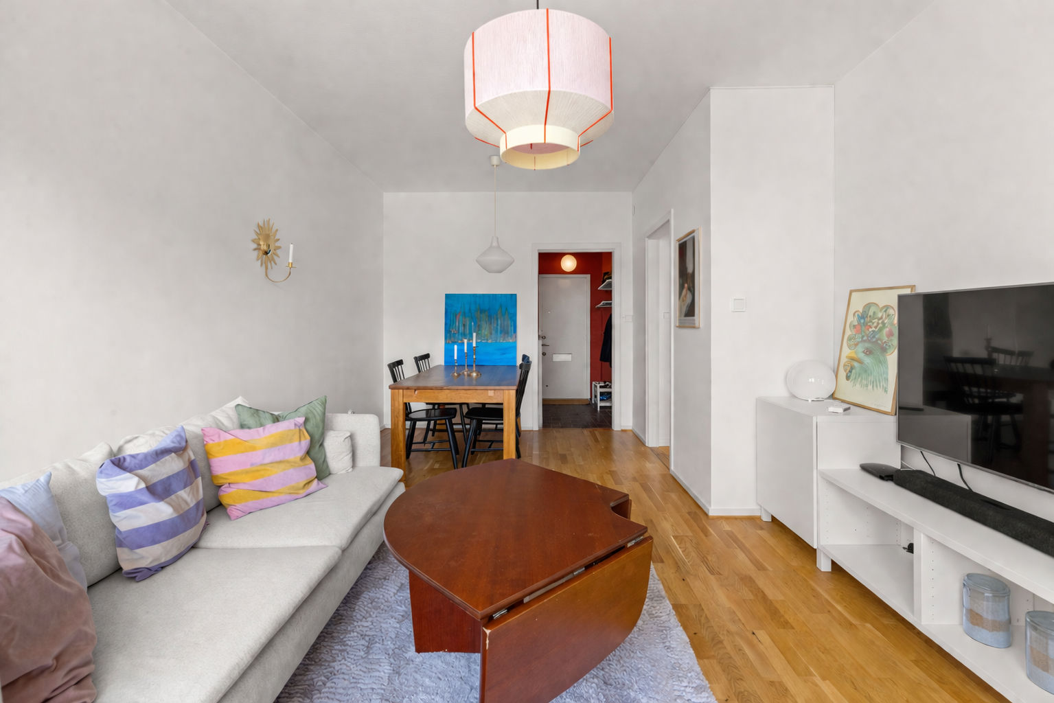 Välkommen till en ytterst välplanerad mini 3:a i lugnt och sjönära läge med balkong i bästa söderläge med sol från förmiddag till sen eftermiddag. Lägenheten har ett rymligt vardagsrum med plats för sittgrupp och matplats. Två väldisponerade sovrum. Ett nytt rymligt arbetskök med mycket gott om förvaring från 2024 och ett kaklat badrum. Hushållselen och fiber bredband (1 000/1 000 Mbit/s)+TV+IP-telefoni ingår i månadsavgiften vilket är en kostnadsbesparing om ca 1 000 kr/mån. Föreningen ligger i framkant med solceller på taket och bergvärme samt övriga energieffektiviseringar. Hiss i fastigheten!