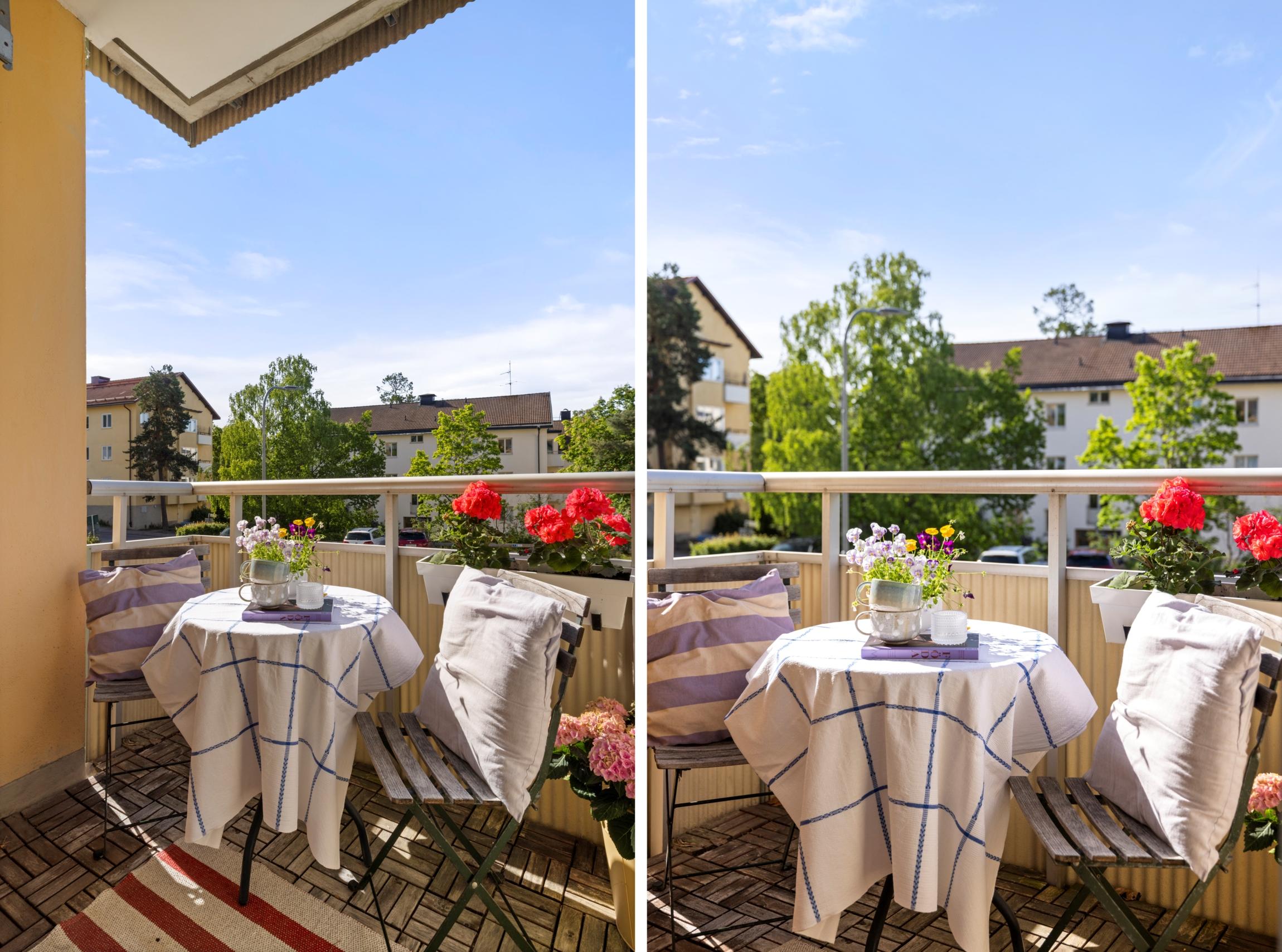 • Gemensamma utrymmenTill lägenheterna finns det förråd, på vinden och i källaren. Tvättstuga finns i fastigheten. Cykelförråd finns även det i fastigheten. Föreningslokal som kan hyras dagtid. Det finns också två gemensamma uteplatser samt odlingsmöjligheter för dig med gröna fingrar.