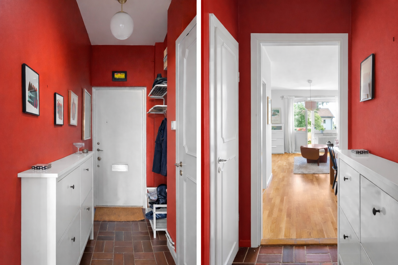 • HallVälkomnande hall med plats för avhängning av ytterkläder samt skoförvaring. Praktiskt klinkergolv som är i original från byggåret som både är slitstarkt och lätt att hålla rent.