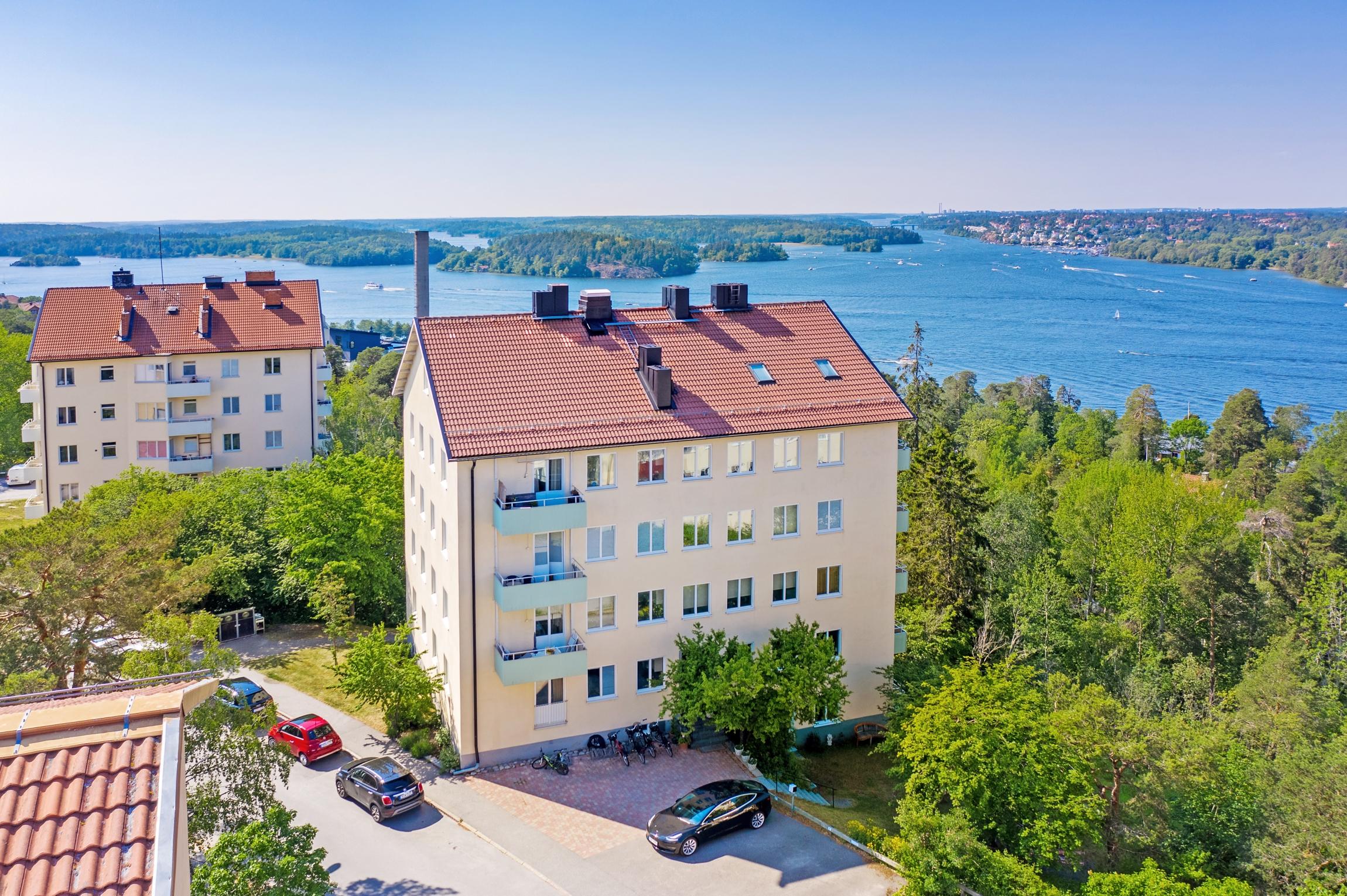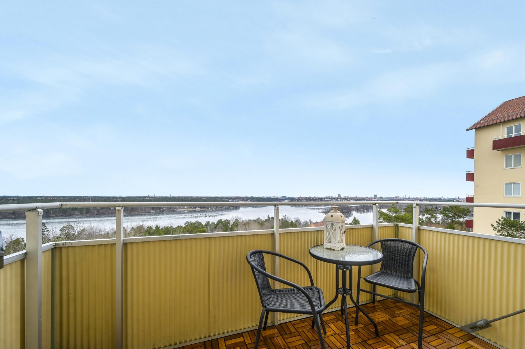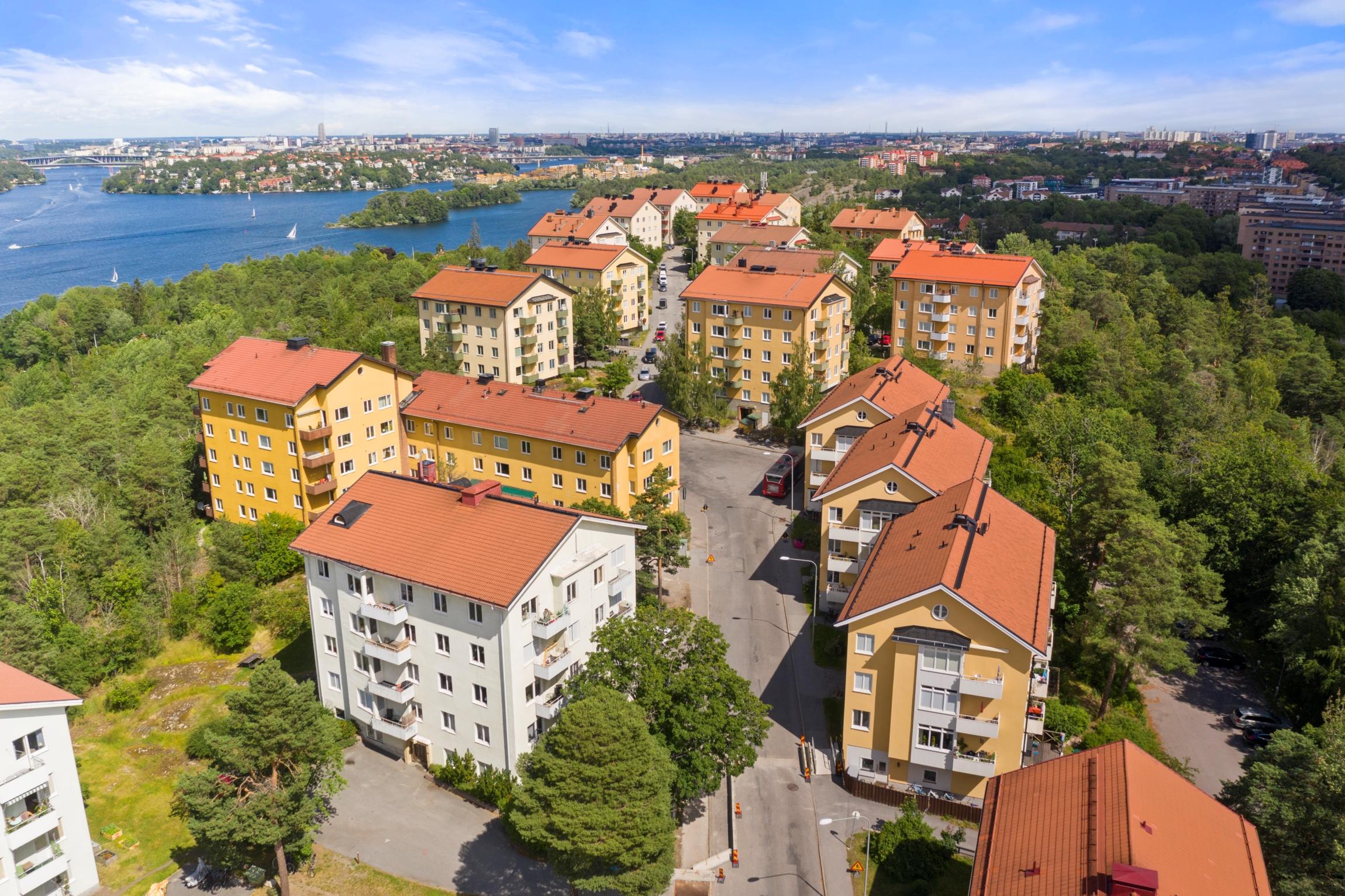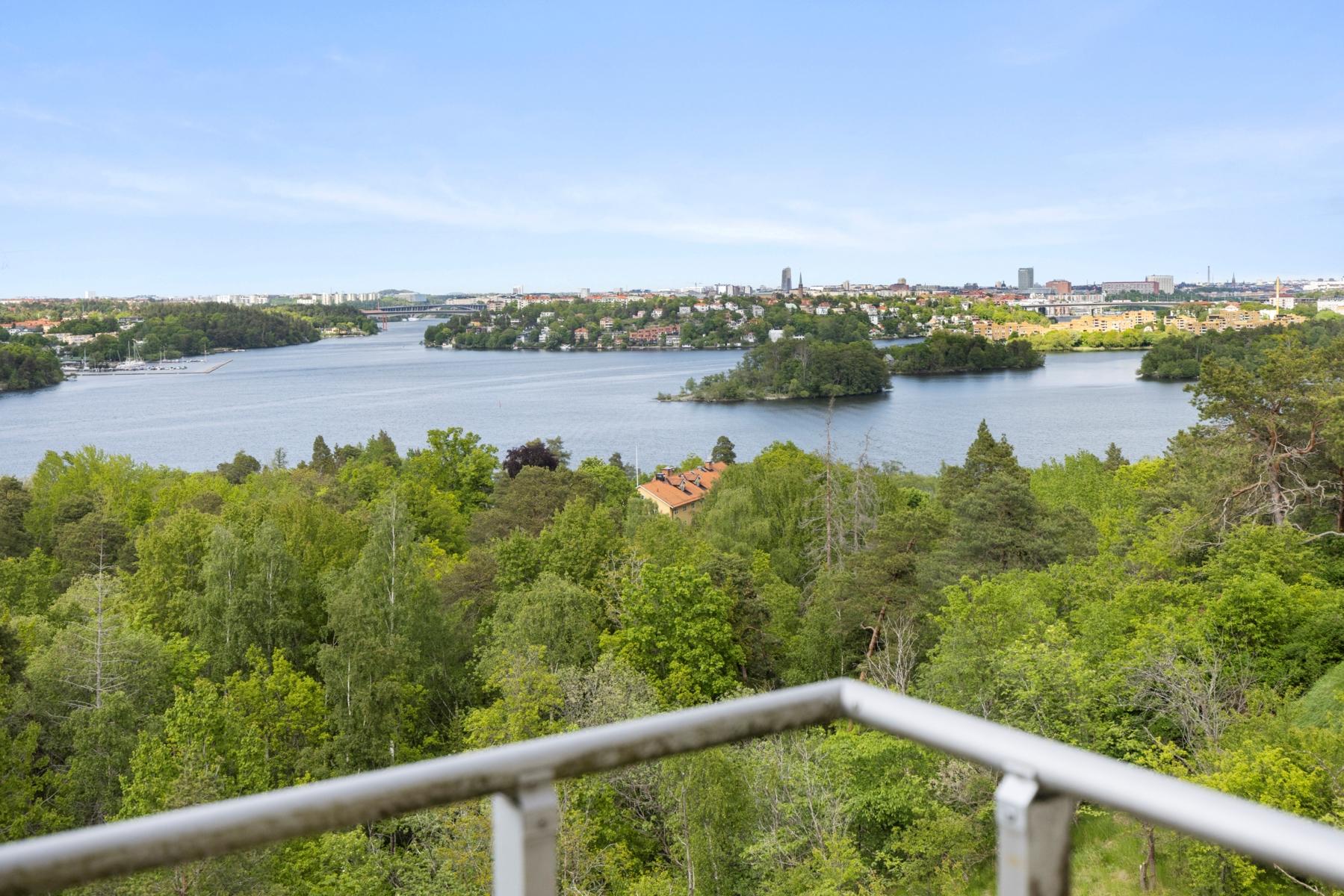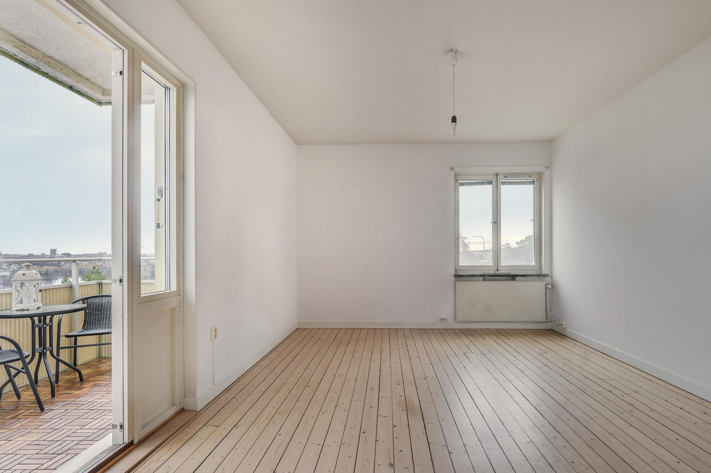 UNIKT TILLFÄLLE! Mysig etta i gavelläge med balkong rakt mot Mälaren och en underbar vy över Stockholm! Lägenheten har genomgående ljusa målade väggar och furugolv i original i vardagsrum och hall. Under mattan i köket är det flytspacklat men under detta ligger troligtvis även originalgolvet kvar. Lägenheten ligger i ett högt öppet läge med vardagsrum och kök i ljus social halvöppen planlösning. Förvaring i inbyggda garderober i hallen. Kaklat badrum med våtrumsmatta som måste renoveras. Detta är en lägenhet som måste upplevas på plats och kan med lite kärlek bli en riktig pärla. Välkommen på visning av denna framtida drömlägenhet!