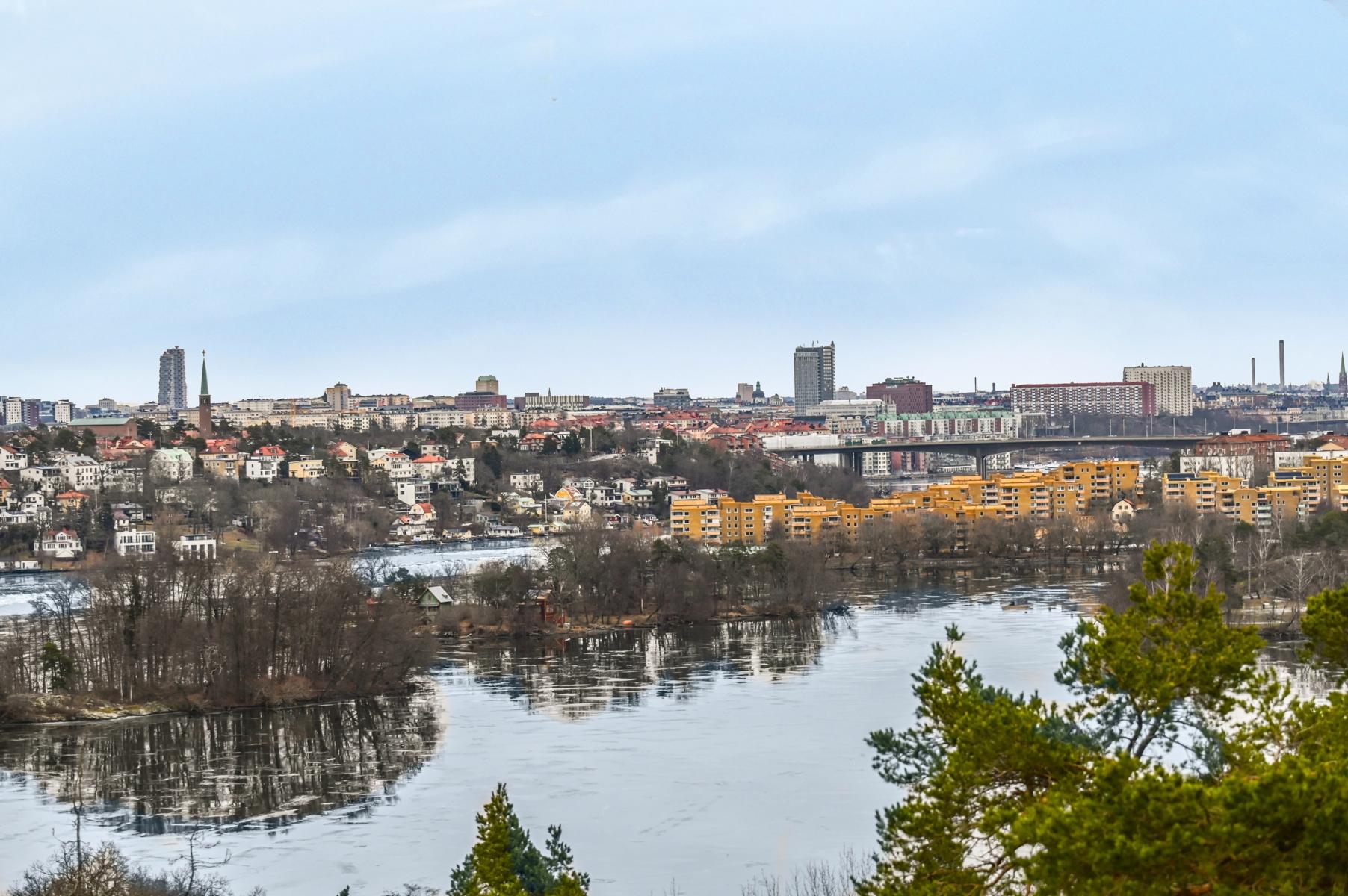 Alla bilderEn oslipad diamant med balkong och slående sjöutsikt över Mälarens vatten och Stockholms siluett