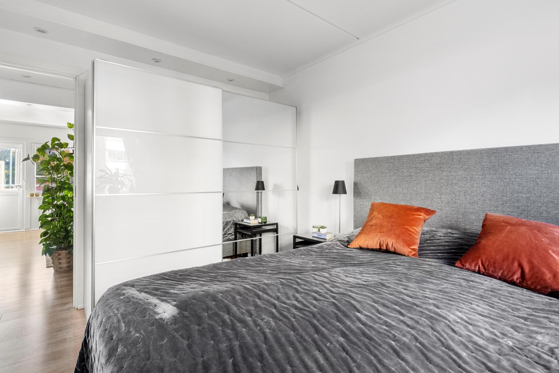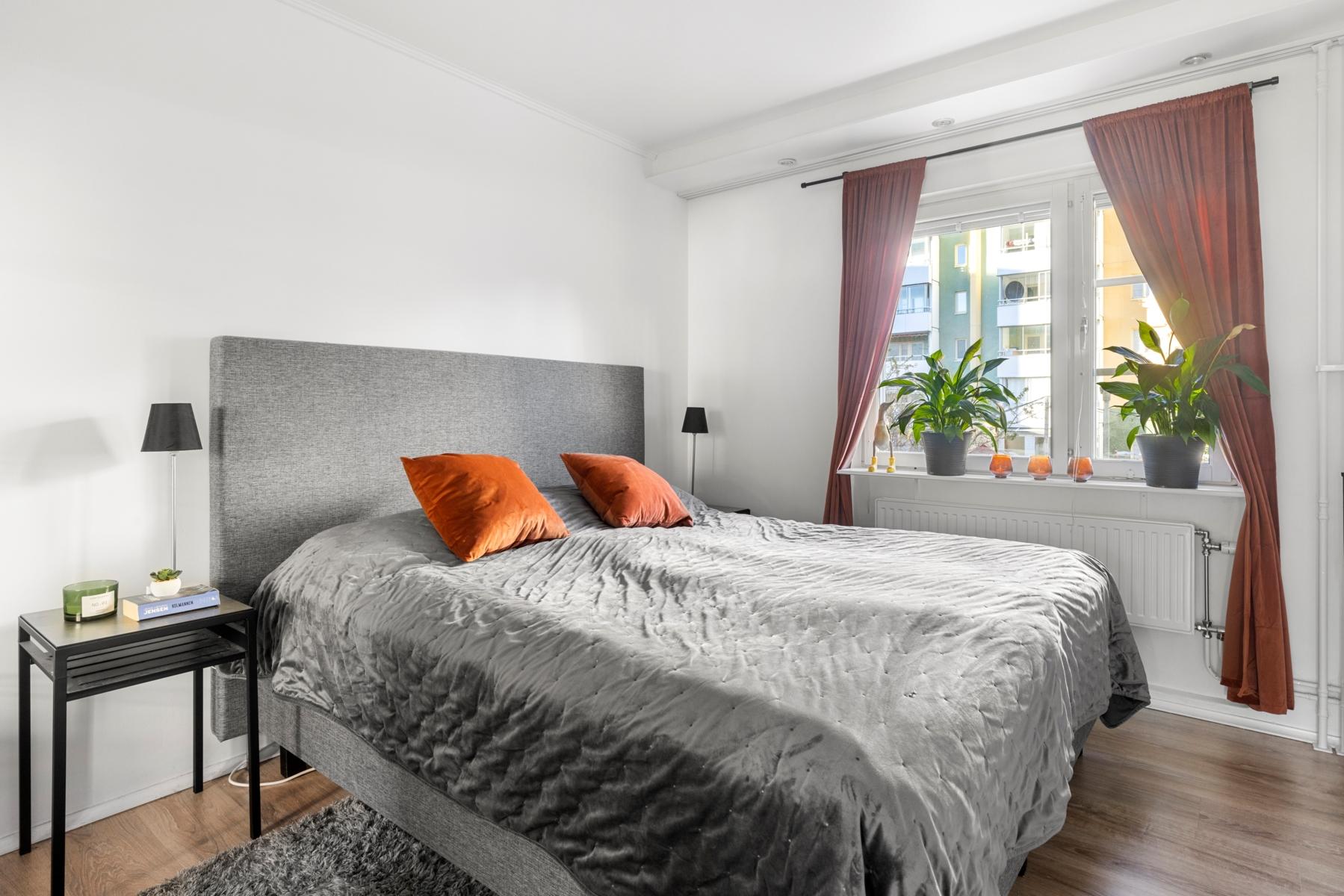 - SovrumVäldisponerat sovrum med plats för dubbelsäng och stor skjutdörrsgarderob. Sovrummet vetter mot den bilfria innergården.