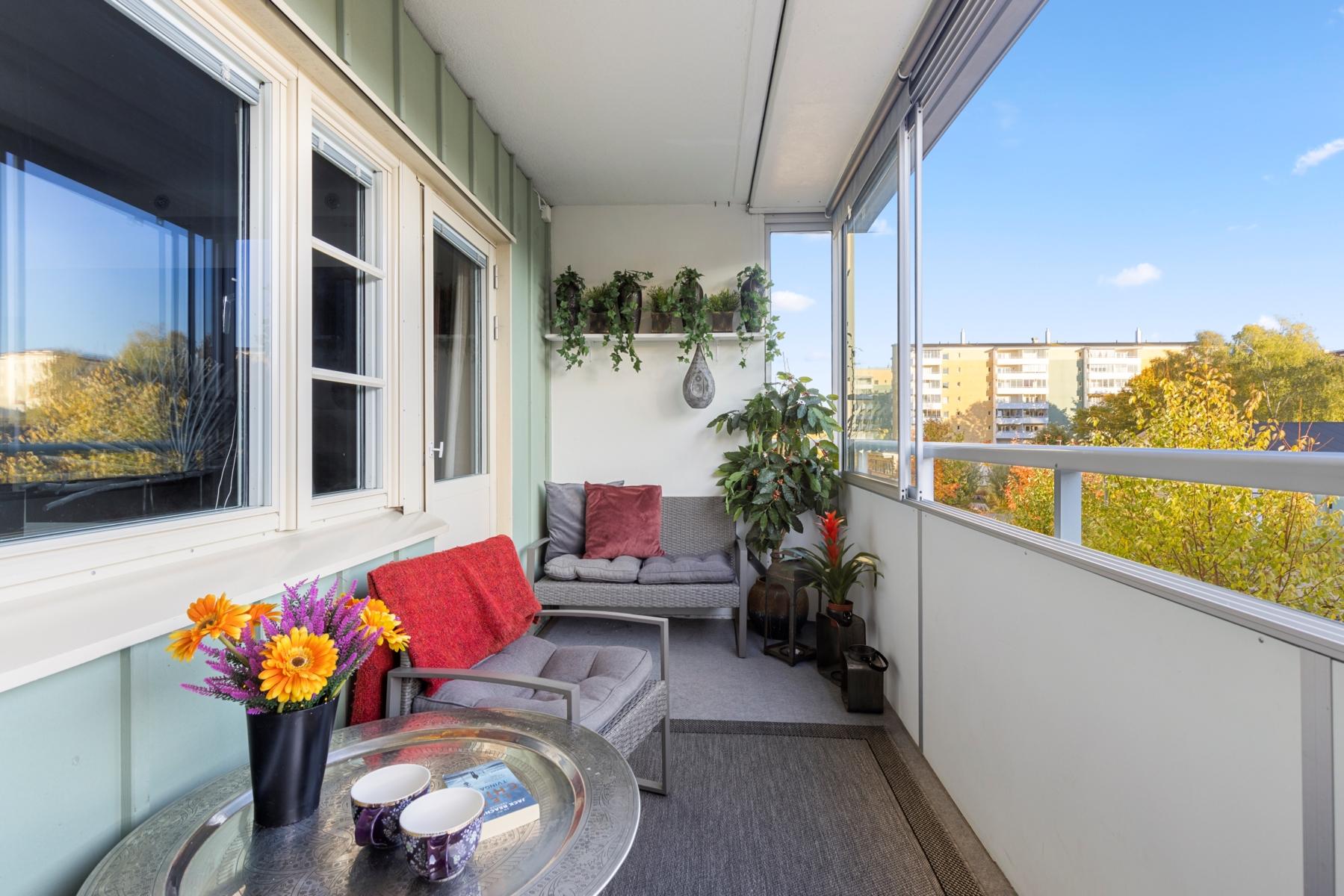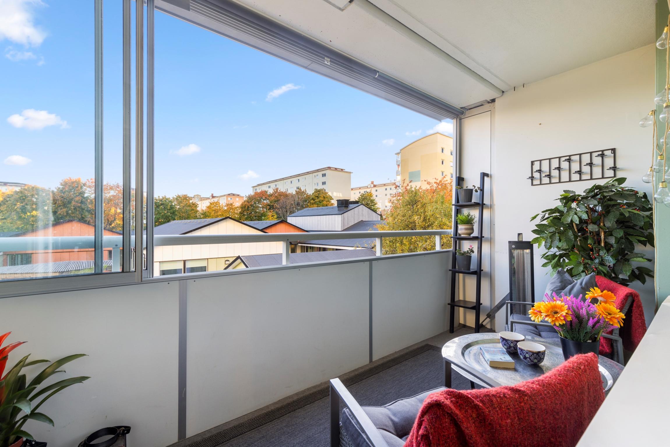 Optimalt planerad 2:a med stor inglasad balkong i söderläge och topprenoverat stambytt badrum!